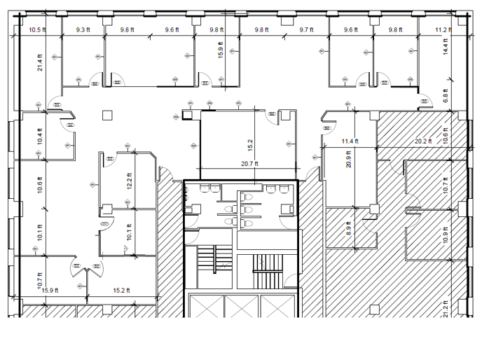 Existing improvements include 10 enclosed offices, two open concept areas, two meeting rooms, fully equipped kitchen, printing room, and storage space